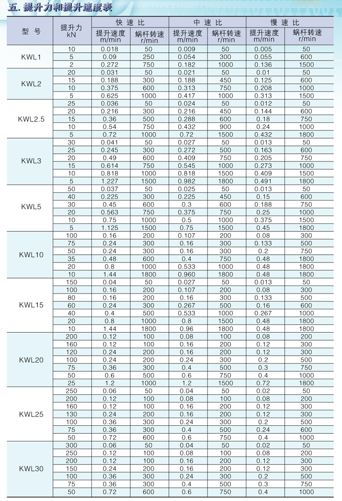 提升力和提升速度表